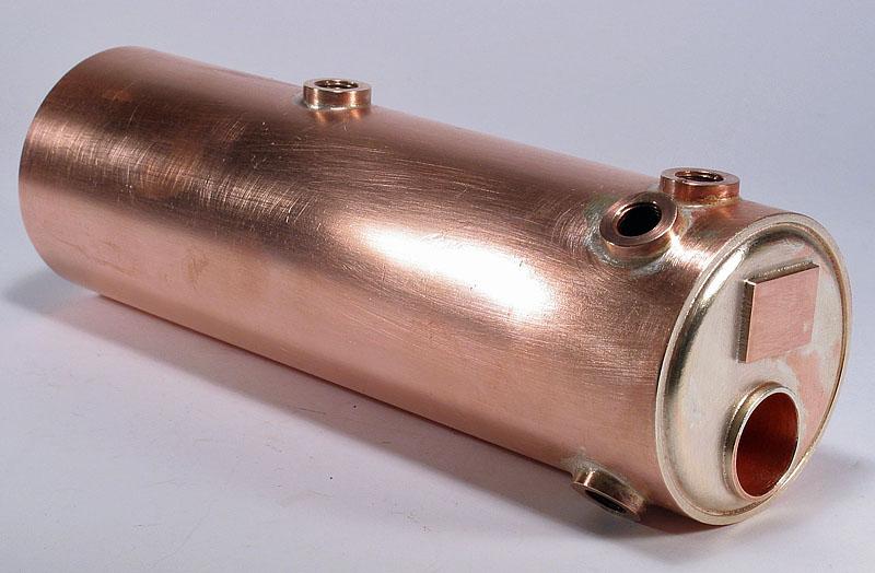 It was now time to fit a boiler. There was no suitable commercial boiler available so this became my first boiler build. I've been getting plenty of practice at silver brazing and the boiler is a simple single flue gas fired one, so I was reasonably confident I could do it.