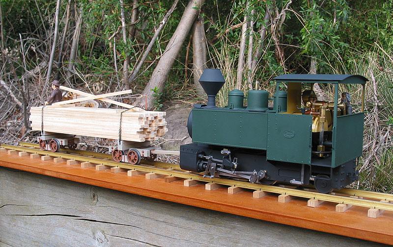 The last photo shows it with a load of sawn timber on a pair of typical log bogies. It's normal train will be six of these.