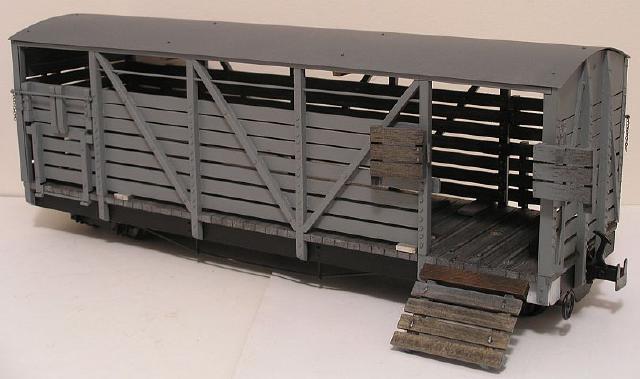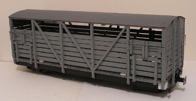 My bogie cattle trucks will end up with corrugated roofs now, as I recently found some larger sheets of the same corrugated card I used for the roofs of the 4 wheel cattle trucks.