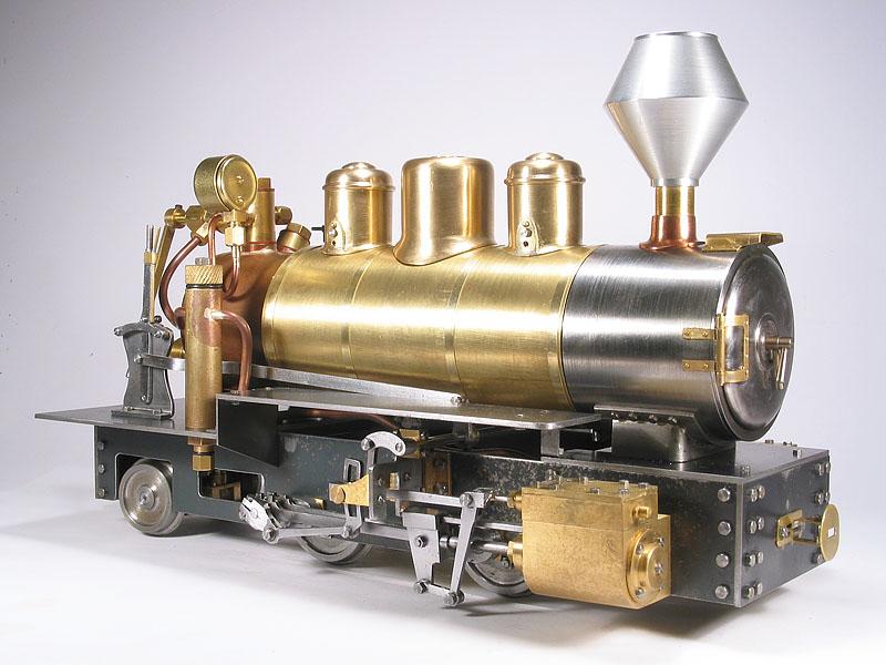 Once it was running on air, it was time to fit the reverser and smokebox. The reverser is more or less standard 'Eric', but the smokebox was made to match the prototype and the smokebox door was made to open. The smokebox was rolled out of 1mm mild steel and the spark arrestor was turned up from a chunk of aluminium to keep the front end weight from getting too heavy. The photo shows it in this state.