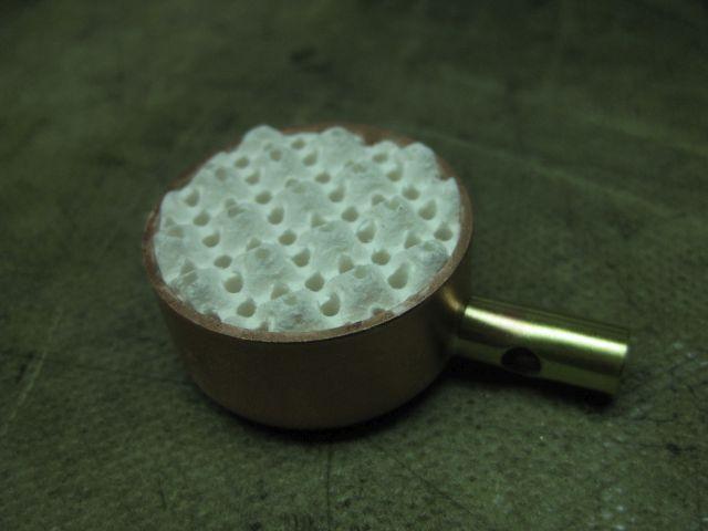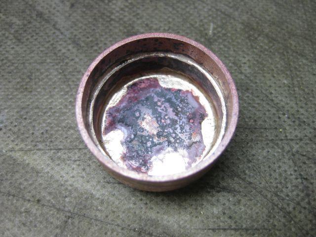 The piece of pipe was hard soldered inside the stop end to support the ceramic when it is in place.