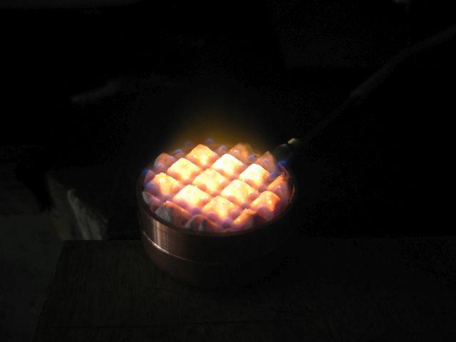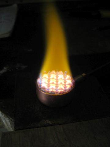 With small burners I drill extra gas holes in the peaks of the ceramic tile not all the peaks are shown drilled.