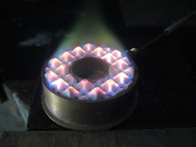 Just found these photographs which show different shape burners and a couple of very small burners one of which uses a mesh.